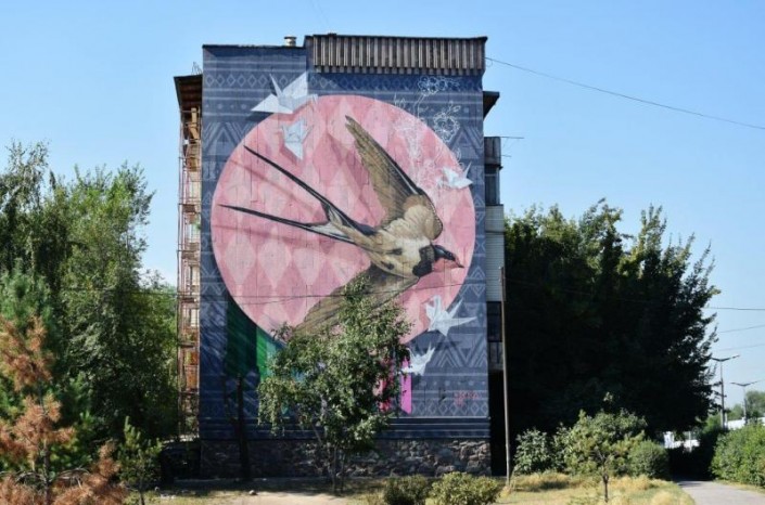 Вот уже второй год подряд в фестивале принимают участие ребята из кыргызстанской команды DOXA - Сергей Келлер и Дмитрий Петровский. Жители Турксибского районе уже оценили работу кыргызских художников. Ласточка, изображенная на фасаде одного из домов недалеко от аэропорта, стала для некоторых особенной любимицей. А ветка урюка напоминает о весне, новой жизни и мечтах.