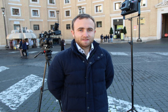 Алексей Готовский живет в Риме около пяти лет. Работает продюсером на телевидении. Учится в местном университете "Санта-Кроче", изучает коммуникации. Парня мы совершенно случайно встретили на площади Святого Петра в Ватикане, недалеко от театра Auditorium Concilliazione, где выступали артисты ГАТОБ имени Абая. На площади он снимал репортаж вместе со съемочной группой местного телеканала. Алексей охотно согласился ответить на несколько наших вопросов.