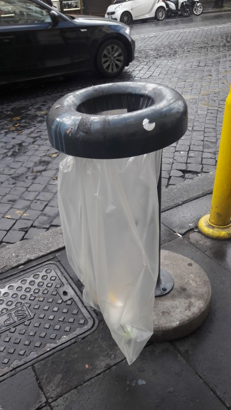 На мусорки здесь подвешиваются прозрачные пакеты