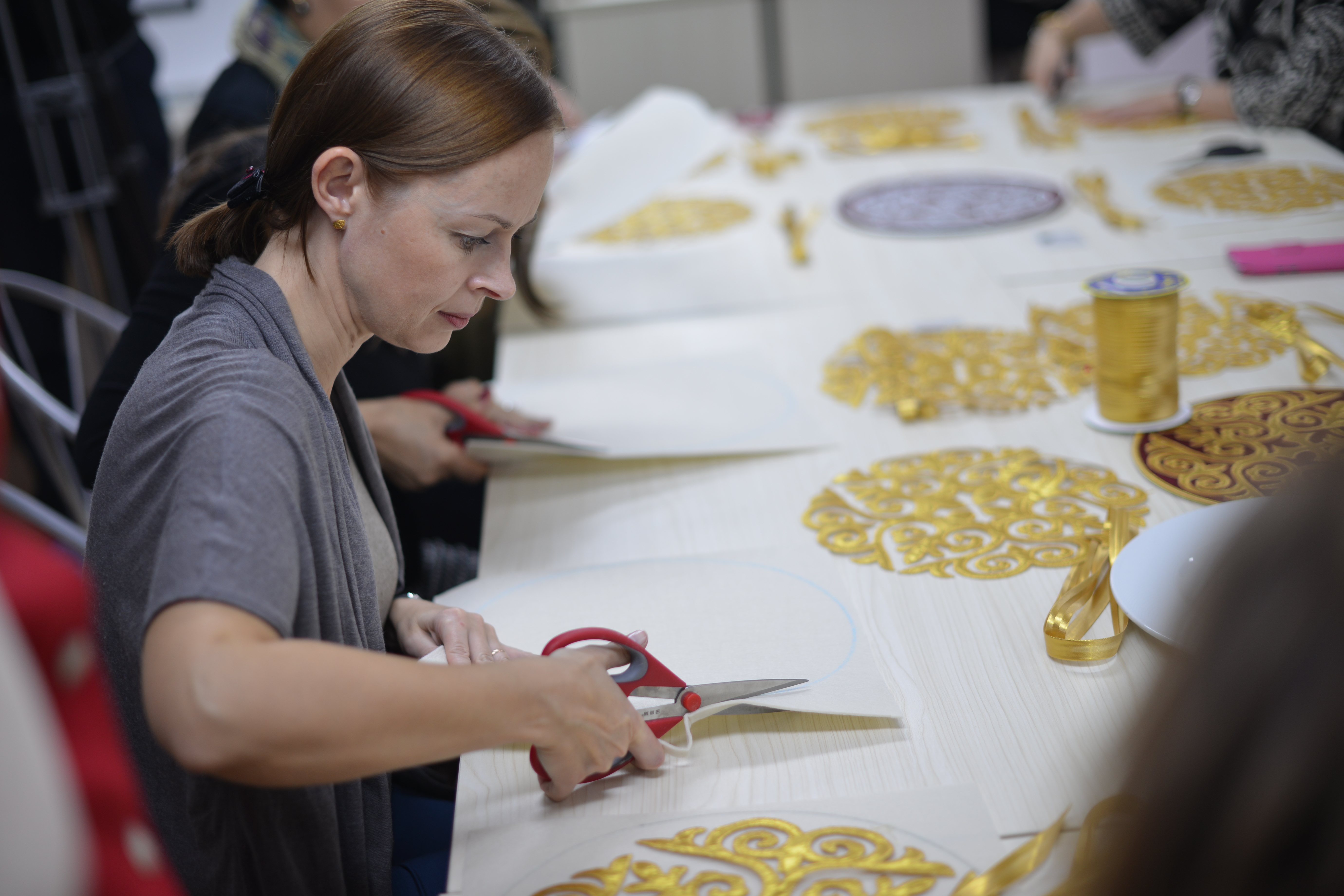 Супругам зарубежных дипломатов в Казахстане преподали мастер-класс по пошиву специальной подставки в национальном стиле, передает Tengrinews.kz.
