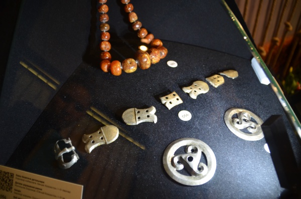 В кургане найдено свыше четырех тысяч золотых изделий: детали, декорировавшие одежду, а также украшения и бытовая утварь. Всего на выставке представлено 106 предметов из фондов Национального музея Республики Казахстан. Представляемые на выставке шедевры древнего и средневекового искусства Казахстана - это лишь малая часть творений безымянных мастеров прошлого, отражающих самобытность наследия степной культуры Евразии.