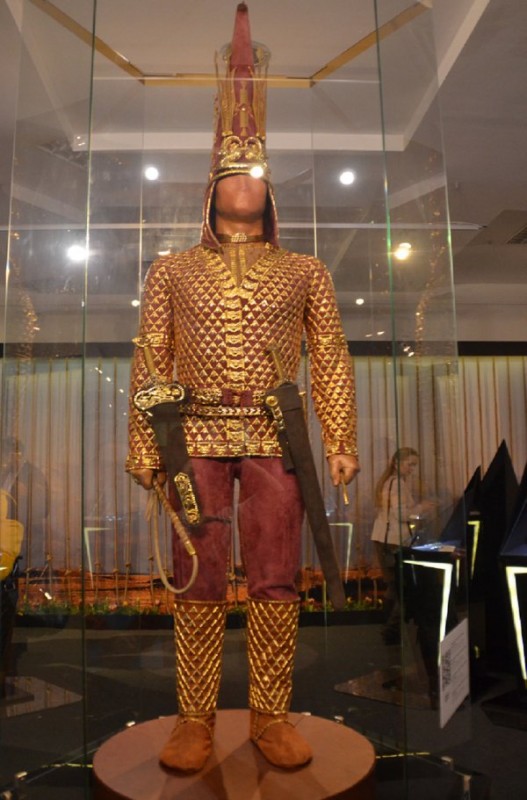 На выставке в Государственном музее искусств Узбекистана можно увидеть реконструкцию "Золотого человека" в расшитой золотыми бляшками одежде, в головном уборе особой конической формы, который украшают золотые пластины в виде золотых стрел, снежных барсов, архаров, лошадей и птиц, и коллекцию археологических находок эпохи раннего железного века (V–IV веков до нашей эры), сопровождавших захоронение этого знатного сакского молодого воина (по мнению археологов, его возраст 17-18 лет).