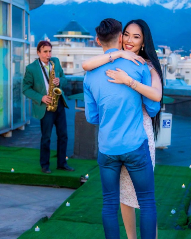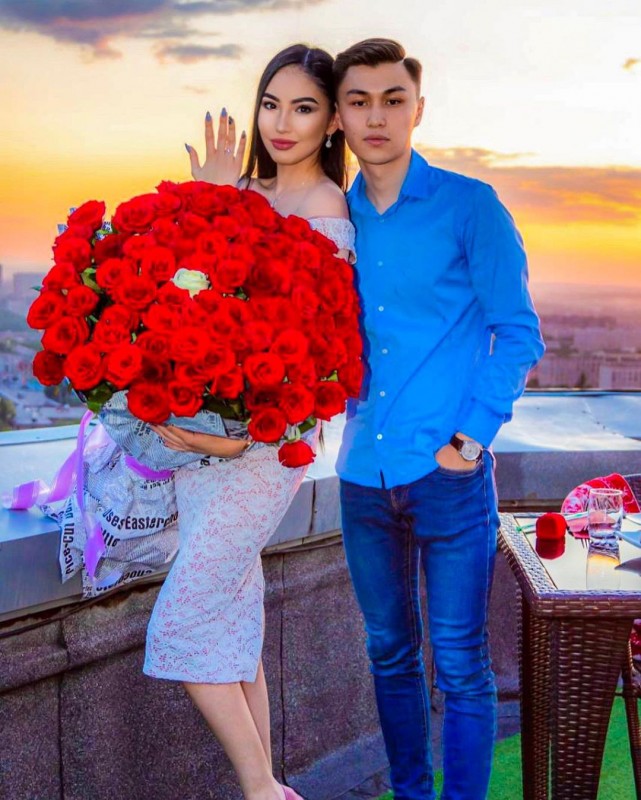 Әзімбаеваға жұбайы биыл шілдеде романтикалық жағдайда, шатырда, саксофонның сүйемелдеуімен сөз салған. 19 жастағы қыз әлеуметтік желіде бұл қуанышты жаңалығын бөлісіп, "Иә" деп жауап бергенін жазған болатын.