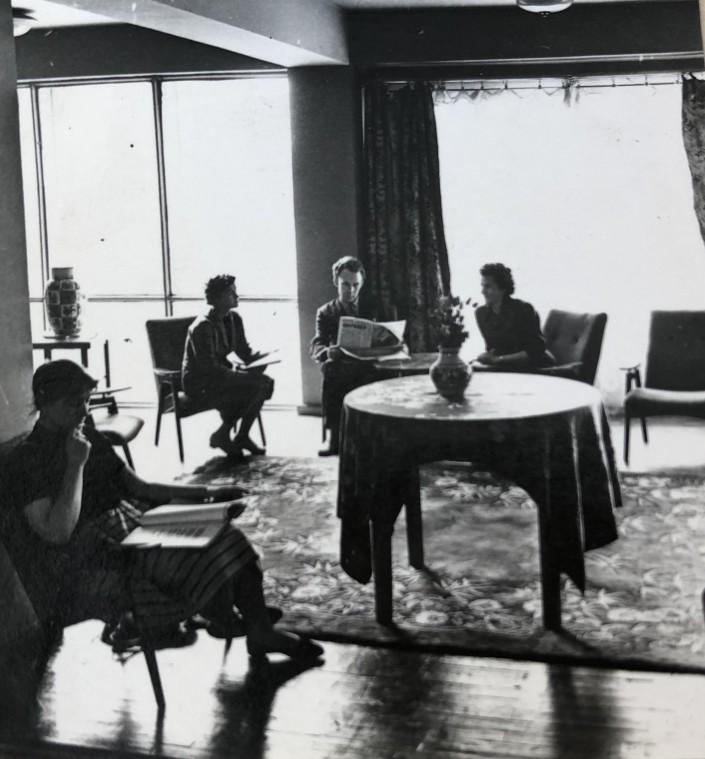 1962, Алма-Ата, холл гостиницы "Казахстан", позже "Иссык". Присутствует самая "модная" мебель. Кресла с пуговицами, круглый стол под скатертью. Именно так выглядело фойе отеля, куда простым советским гражданам путь был заказан.