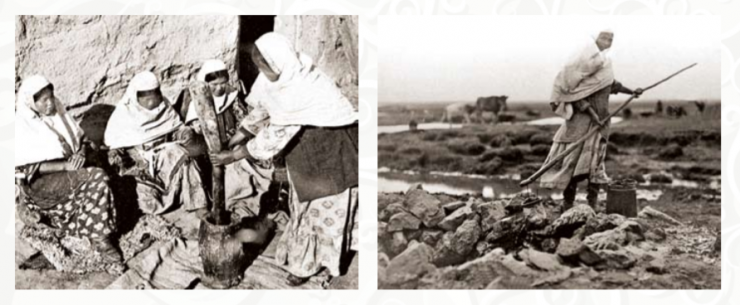 Шал, қариялар шапан, ішік, бешпент, сырма шалбар, ақ жейде, дамбал киіп, аяққа саптама етік, кебіс-мәсі киген.