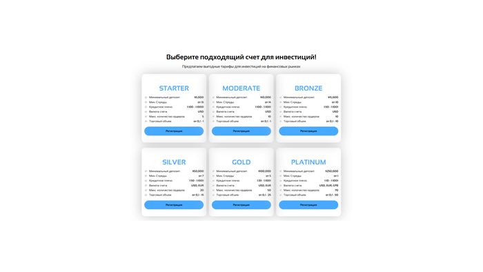 Брокер предлагает несколько типов счетов, различающихся по уровню входа и параметрам: