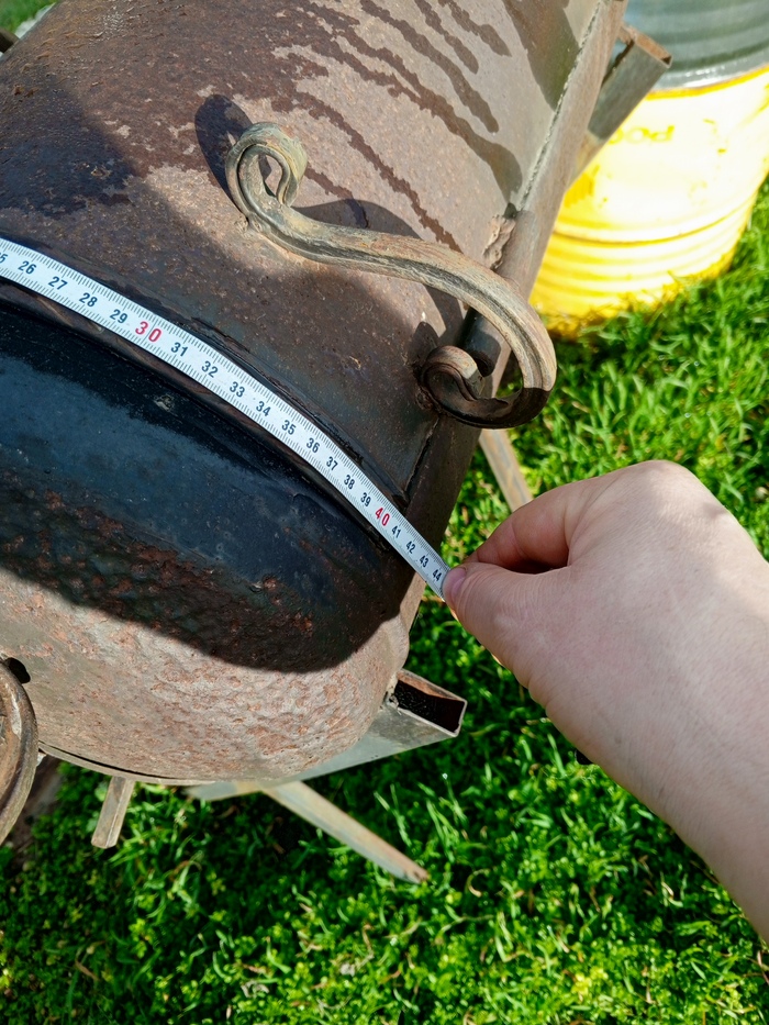 В дне барбекю сверлом пяток отверстий 8-10 мм они для стекания воды, когда тугим угли. Варим упоры для решетки или режем прорези для шампуров(шамуры я не использую) и решетку. У меня поперечные пруты, но второй раз я бы сделал продольные- варить меньше ичистить проще. Привариваем ручки и декор по периметр. Декор перекрывает прорези. Ну и всё, собственно. Остальное на соё усмотрение.