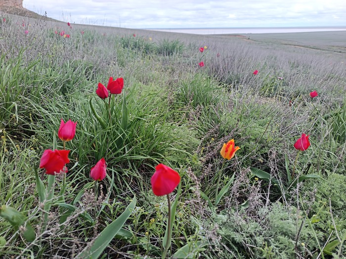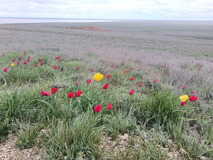 В Баскунчаке местные активно интересовались, зачем мы приехали, и посыл про интерес к степи вызывал у многих непонимание. Такие истории бесят так же, как капиталиста коммунист - есть программа, и турист должен ей соответствовать, иначе это не турист. Приехали в Эльтон, пожилая хозяйка начала ту же песню, что надо на машине, что тут аж 6 км и это вот все про сервисы. Я ответила, что мы любим ходить сами. На вопрос о мотивах пояснила, что вот мы с дочкой пошли вокруг Баскунчака пешком, любовались степью, в которой были только мы вдвоём, переходили роскошные балки с крутыми склонами, на которых цвели разные травы, в том числе тюльпаны. И эта красота никак не сравнится с тем, что видит пассажир авто, который едет по дороге. Тут я чётко поняла, что меня заносит, испуганно посмотрела на хозяйку, и её лицо мне показалось юным и далёким от реальности. Она помолчала о чем-то своём, потом посмотрела на дочку и сказала, что нам повезло, что мы есть друг у друга. Больше она ничего не говорила о трансферах, а с большим воодушевлением рассказала, куда нам стоит пойти завтра, чтобы увидеть самое красивое, что есть около Эльтона.