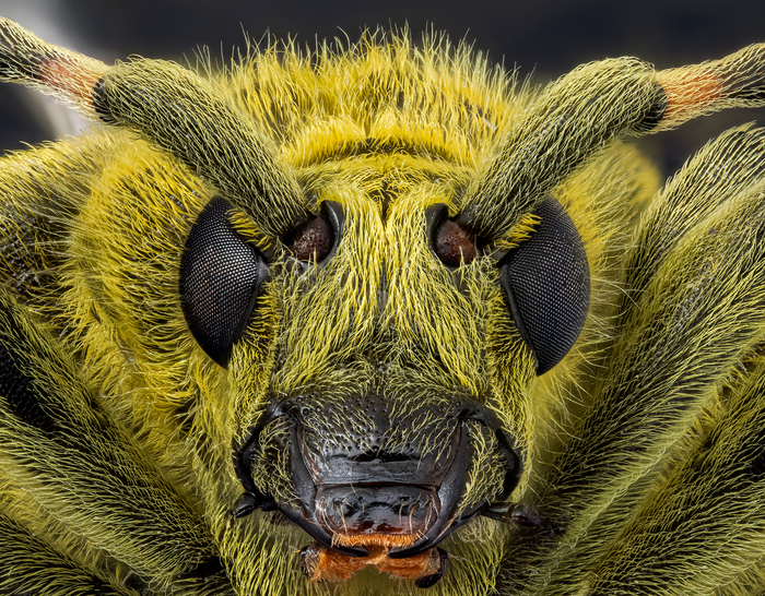 Общий вид. Видно какой он пушистик. Эта его "пушистость" придаёт ему такой необычный , немного матовый , зеленый цвет. С освещением пока еще до конца не разобрался, поэтому "шерсть" много бликует. Научимся) Цвет немного увёл в жёлтый.