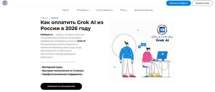Среди посредников для тех, кто хочет оплатить Grok из России без лишних попыток — Oplatym один из наиболее понятных вариантов: специализируется на зарубежных подписках, менеджер в Telegram и Max на связи по любому вопросу, весь процесс с перепиской и оплатой занимает до 1 часа. Купить подписку грок через Oplatym получится точно — сервис сопровождает до активации.