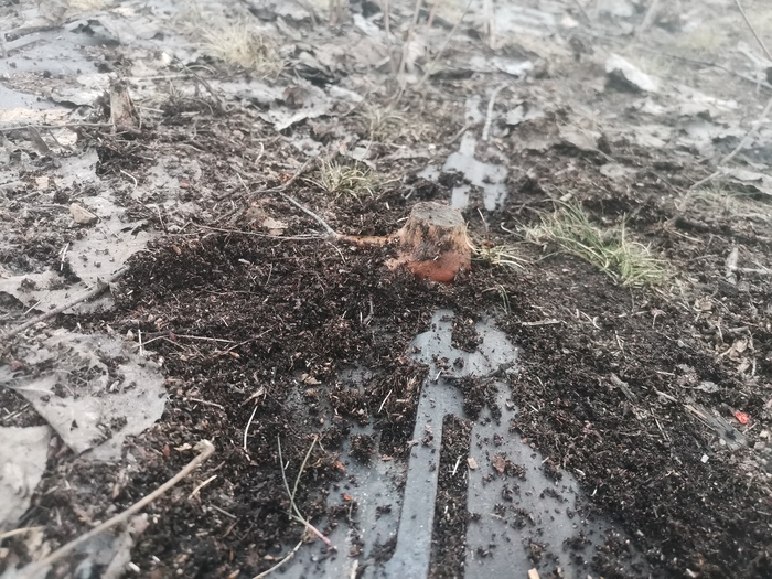 Деревья были удалены, но после них остались пеньки: