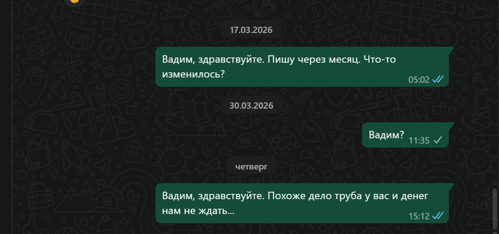 Март 2026 — пишу 5-го и 17-го. Ответа нет. 30-го — тишина.