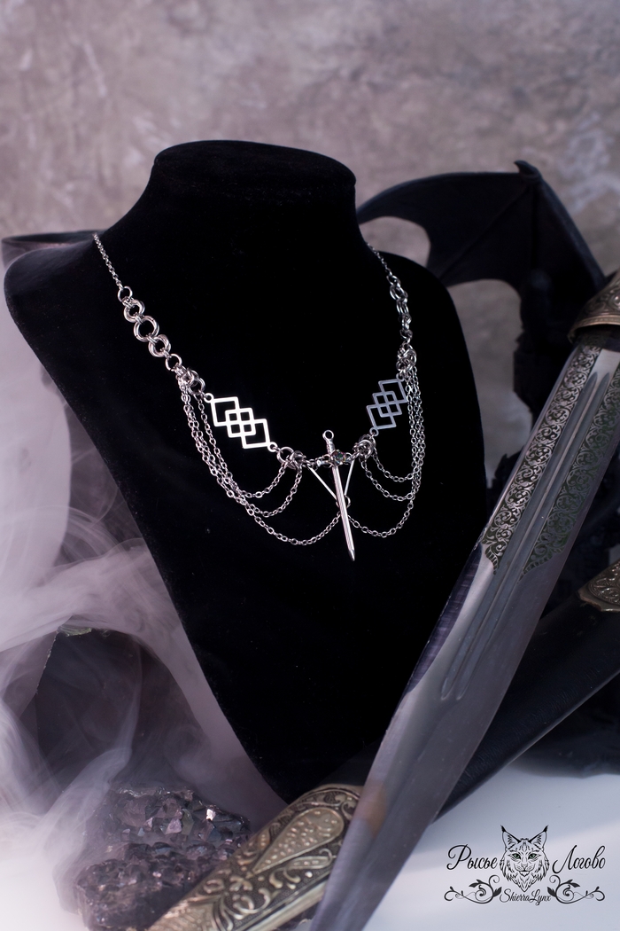 Меч в украшении - это пример того, как символ силы и мужества можно переосмыслить в женскую красоту и самовыражение.
