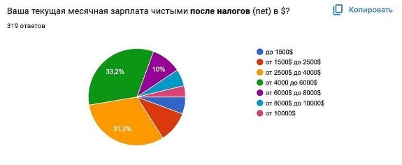 Ошибочно думать, что после 2022-го года это невозможно.Мы в ОМ делали опрос для нашедших удаленную работу на иностранные компании в 2023–2024 годах. Ниже статистика зарплат респондентов.