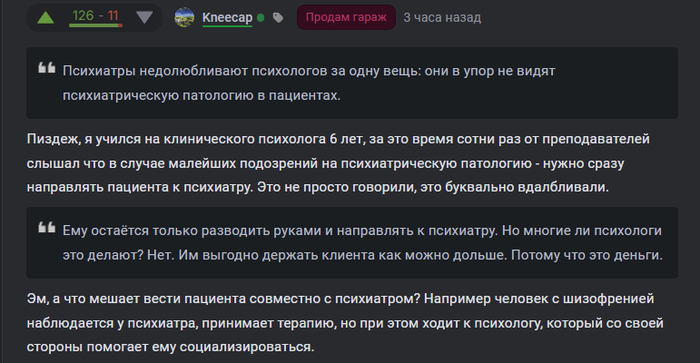 Походы к психологу работали, пока я была относительно в норме. Но когда состояние дошло "до ручки" и я сказала психологу, что думаю о суициде, он продолжил терапию своими же стандартными методами разговора, вместо того, чтобы сразу направить к психиатру.