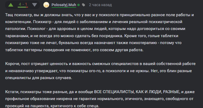 Просто психиатр конкретно так "диагноз-рецепт-через месяц повторный приём, будет хуже, пишите сразу, вот контакт".