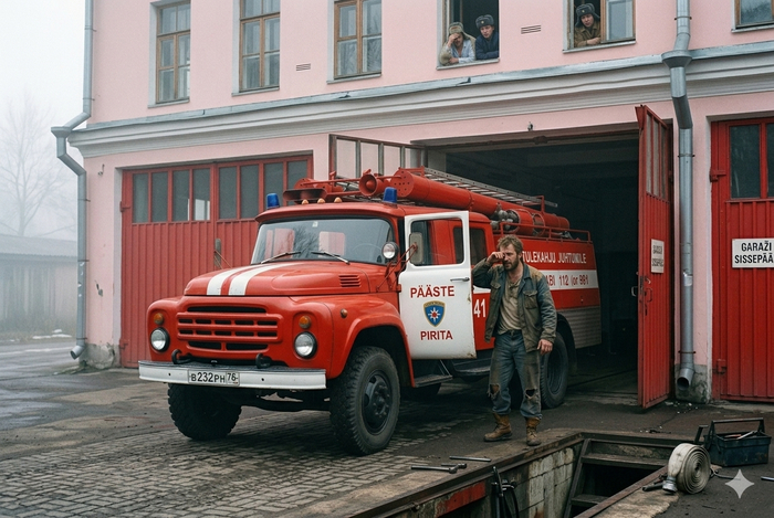 Жил он тогда, в г. Маарду, на улице Spordi. Там и проснулся поутру. Вышел на кухню, попить воды. Подошел, к окну, увидел: стоящую, пожарную машину. Обрадовался — доеду до работы, с мужиками. Вышел из дома. Обошел вокруг машины. Удивился, “А, где народ? Почему, никто не встречает дорогого коллегу?”