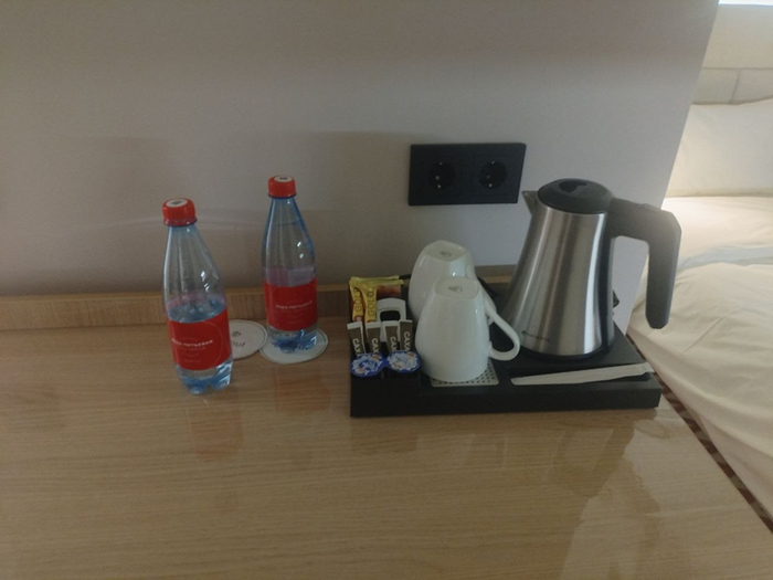Водичка, чай, кофе, тапочки, набор всякой косметики для гигиены, зубной набор – кайф. Но 7к за ночь все еще возмущает. Да, это не я оплачиваю, но ночь перекантоваться я бы предпочел за более скромную сумму.