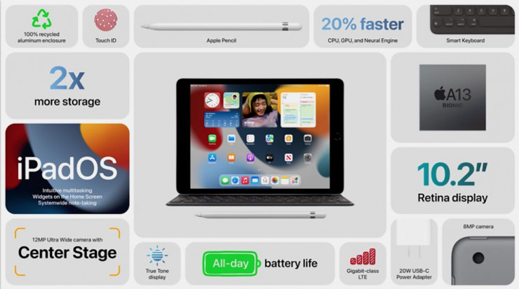 Новая базовая модель планшета iPad получила процессор A13 Bionic и усовершенствованную камеру, которой ранее был оснащен iPad Pro. Гаджет будет доступен для заказов по цене 329 долларов за устройство с объемом памяти в 64 Гб.