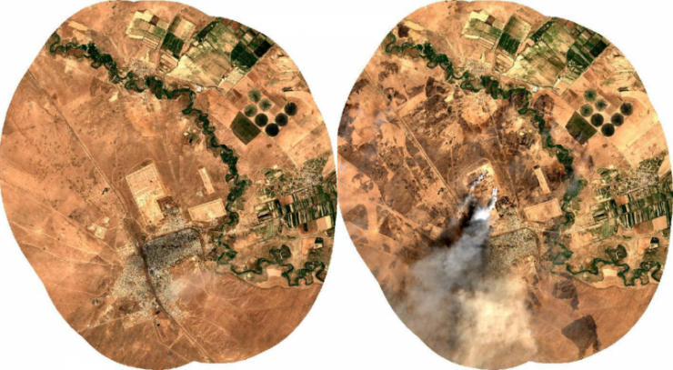 Таким образом, к примеру, команде удалось сделать снимки Арыси до взрывов и после.