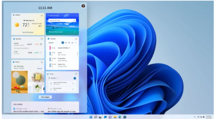 • Важной частью операционной системы станет возвращение раздела "Виджеты" с персонализированной лентой новостей на основе вкусов и предпочтений пользователя, к которым будет подстраиваться искусственный интеллект, браузером Edge, погодой, календарем, курсами валют и другими приложениями. Окно с виджетами будет запускаться с отдельной кнопки.