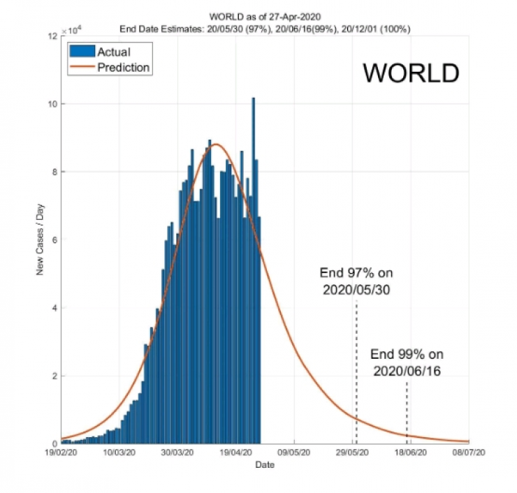 Согласно выводам ученых, в США эпидемия полностью утихнет к 9 сентября, в России - к 7 августа, в Иране - к 28 сентября, в Турции - к 30 июля, в Италии - к 31 августа, в Испании - ко 2 августа, в Канаде - к 20 августа, в Великобритании - к 22 августа, во Франции - к 9 августа. В Китае завершение ситуации с COVID-19 произошло уже 9 апреля.