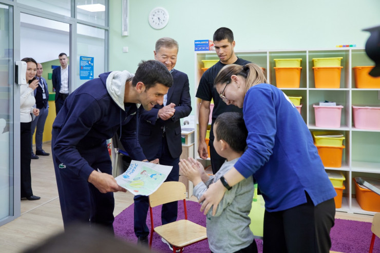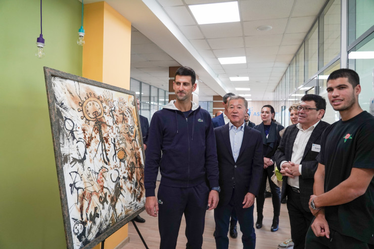Президент федерации тенниса и учредитель Фонда Булат Утемуратов показал центр первой ракетке мира испанцу Карлосу Алькарасу, 21-кратному чемпиону турниров "Большого Шлема" сербу Новаку Джоковичу, первой ракетке Канады Феликсу Оже-Альяссиму и четвёртой ракетке мира Даниилу Медведеву.