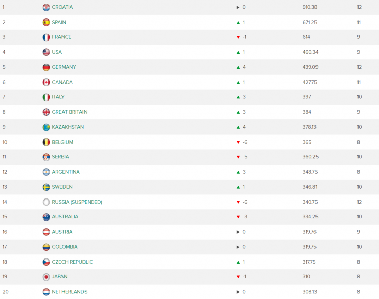 Казахстан в обновленном 7 марта рейтинге прыгнул в топ-10 и теперь занимает девятую строчку. До этого были 13-ми.