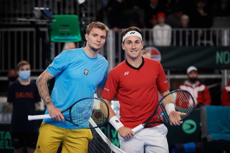 А в следующем матче все решилось. Причем Александр Бублик очень уверенно прошел Каспера Рууда - 6:4, 5:7, 6:4. Для казахстанского теннисиста это была первая победа над норвежцем, да еще и на его территории. До этого Бублик проиграл Рууду все три матча. А Каспер, кстати, шел на серии из десяти побед в Кубке Дэвиса в "одиночках".