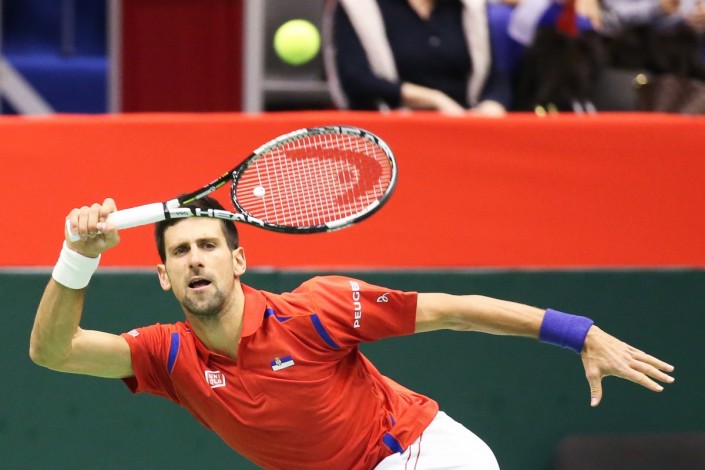 Новак Джокович вышел из себя на матче против команды Казахстана © dailyrecord.co.uk