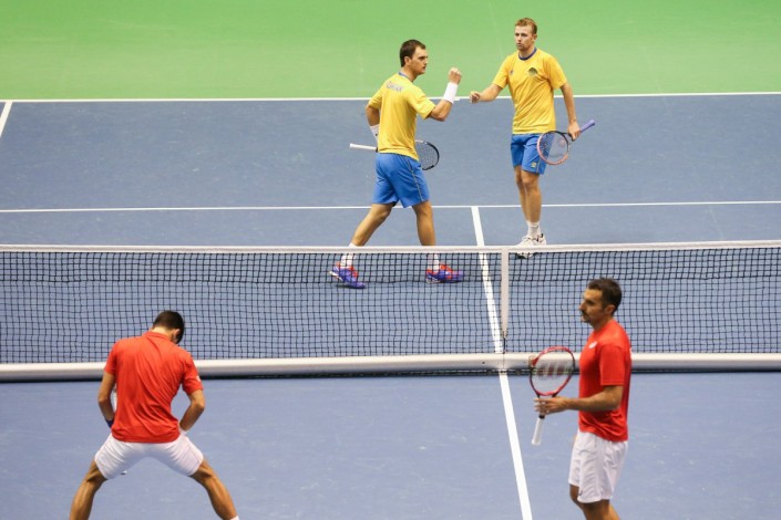 В парном разряде казахстанский дуэт Александр Недовесов и Андрей Голубев в трех сетах обыграли сербов Новака Джоковича и Ненада Зимонича: 3:6, 6:7, 5:7. Таким образом, после двух дней противостояния с Сербией сборная Казахстана впереди - 2:1.