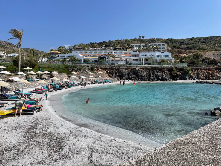 Aldemar Knossos Royal 5* расположен на огромной территории, где есть теннисный и волейбольный корты, спа-центр, несколько шеринг-пулов (общий бассейн на два-три номера) и самое главное - лучшие рестораны с разнообразием морепродуктов и других блюд. В Aldemar Knossos Royal чувствуется атмосфера домашнего уюта во всем. И это не случайно: 30 лет назад его основала греческая семья. Волны на здешнем пляже достаточно большие, берег каменистый.