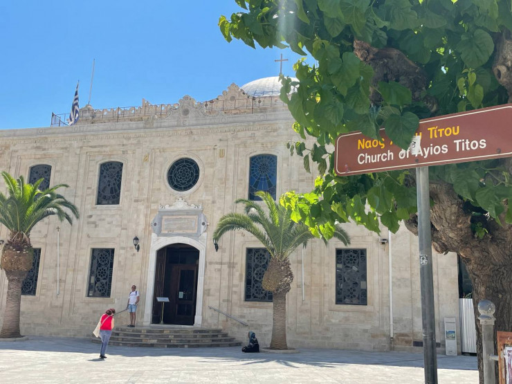 Когда-то арабы превратили Ираклион в укрепленный форт. Потом город захватили византийцы, после - венецианцы и турки. Вообще, следы разных цивилизаций можно увидеть на многих старинных зданиях. Ярким примером такого скрещивания культур и религий служит Собор святого Тита. Он был построен как католический храм, а во времена правления османов крест на куполе сменил полумесяц и здание стало мечетью. Сейчас стены собора украшены и византийскими барельефами, и арабскими орнаментами, и надписями вязью. Зрелище прекрасное.