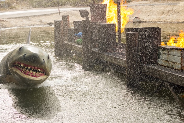 Для меня же все началось с представления Water World ("водный мир"), основанного на сюжете одноименного фильма. Настоящие декорации, перестрелки, погони и драки, беженцы и бандиты, взрыв падающего гидросамолета и надежда на спасение.