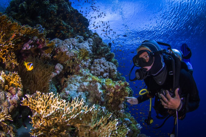 Наконец, подходит пора облачаться в подводные доспехи: гидрокостюм, баллоны, груз (все вместе в общей сложности 20 килограмм). Легкое отталкивание от кормы - и вот ты уже в иных мирах; лишь где-то сверху за спиной маячит твой проводник, направляющий тебя в ту или иную сторону и периодически спрашивающий, все ли в порядке. А пока начинается обход необычного дворцового сооружения, отвесные стены которого выполнены из тысяч кораллов невероятных форм и расцветок.