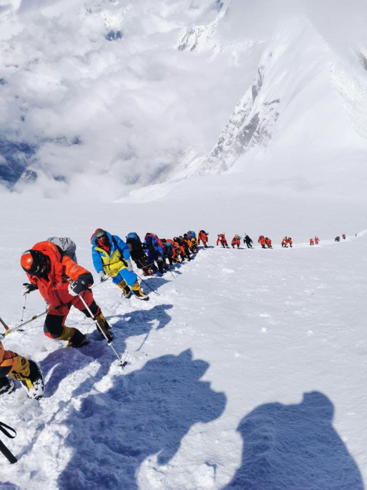 Вторая сложность - пробки. Около 200 человек приехали ради восхождения на Манаслу и примерно столько же живет на горе - это шерпы (народность, живущая в Восточном Непале - прим.автора). Выходит, что все альпинисты двигаются между лагерями и образуется длинная пробка из людей. Люди с разным уровнем физической подготовки, разным уровнем акклиматизации и опыта выходят на одну тропу, и темп у всех абсолютно разный. Иногда приходится медленно идти или останавливаться на опасных участках, которые могут обвалиться или треснуть под ногами.