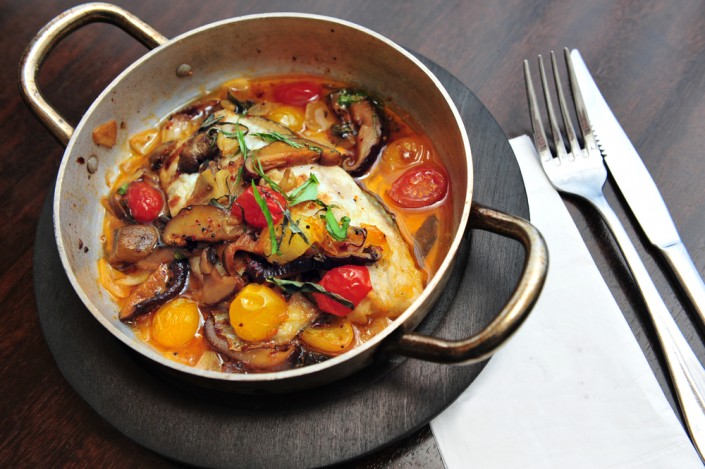 Шакшука – это один из самых популярных завтраков в Израиле. Основные ингредиенты – яйца и помидоры, но шакшука – это больше, чем просто яичница. Главную роль в шакшуке играют помидоры, на одну порцию требуется примерно 5-7 штук. Из помидоров, лука, чеснока и специй готовится густой соус, в который потом аккуратно вбиваются сырые яйца. Блюдо получается очень красивым: бело-желтые кругляши яичницы весьма живописно смотрятся на красном томатном фоне.