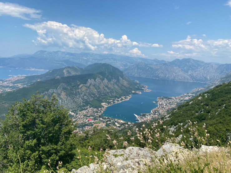 Перекусив, мы отправились в Котор. Но до этого меня ждал известный серпантин с 25 поворотами - настоящее испытание для людей со слабым вестибулярным аппаратом. Меня, признаться, слегка укачало. А вот такой вид открывался сверху.