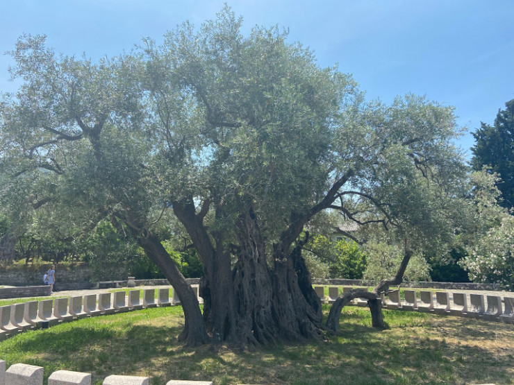 Неподалеку есть одна из главных достопримечательностей города - большое оливковое дерево. Его считают самым старым в Европе. Оливе больше 2000 лет. Она занесена в список наследия ЮНЕСКО и находится под охраной государства.