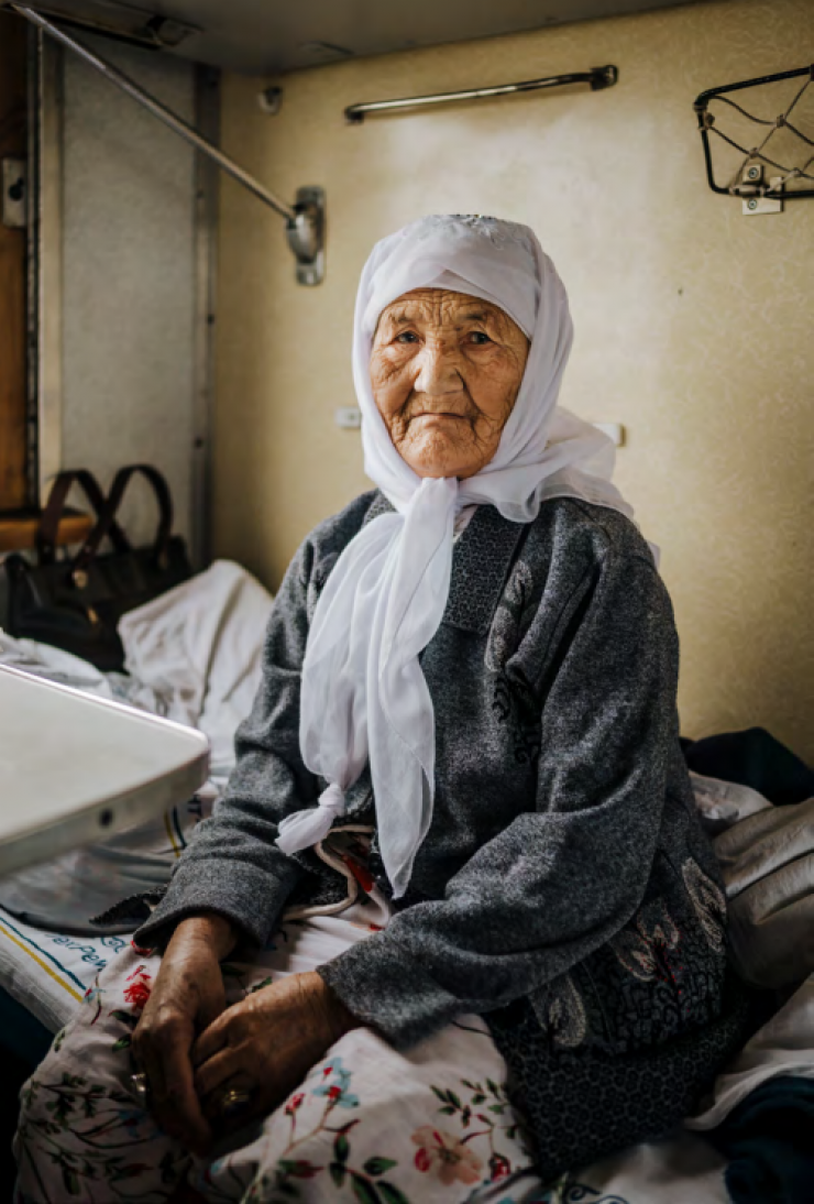 Облегчение - потому что я наконец была дома, а печаль - потому что мне пришлось оставить всех своих друзей и соседей. Но, в конце концов, это было правильное решение. Здесь, в Казахстане, тишина и покой - единственное, что мне нужно в этом возрасте. Путешествовать в поезде для меня - самое захватывающее приключение. Можно пить чай весь день, знакомиться с новыми людьми и наблюдать за степью из окна. Это отражает мое внутреннее состояние".