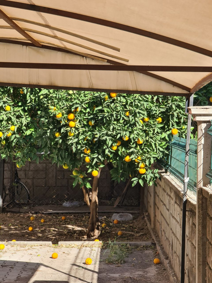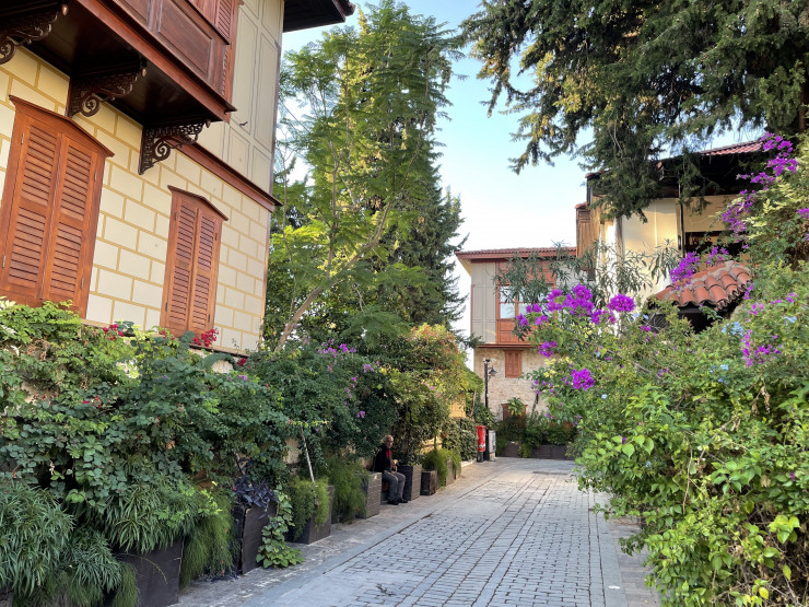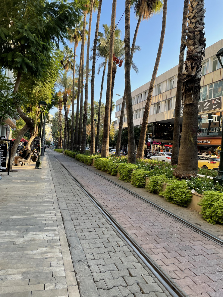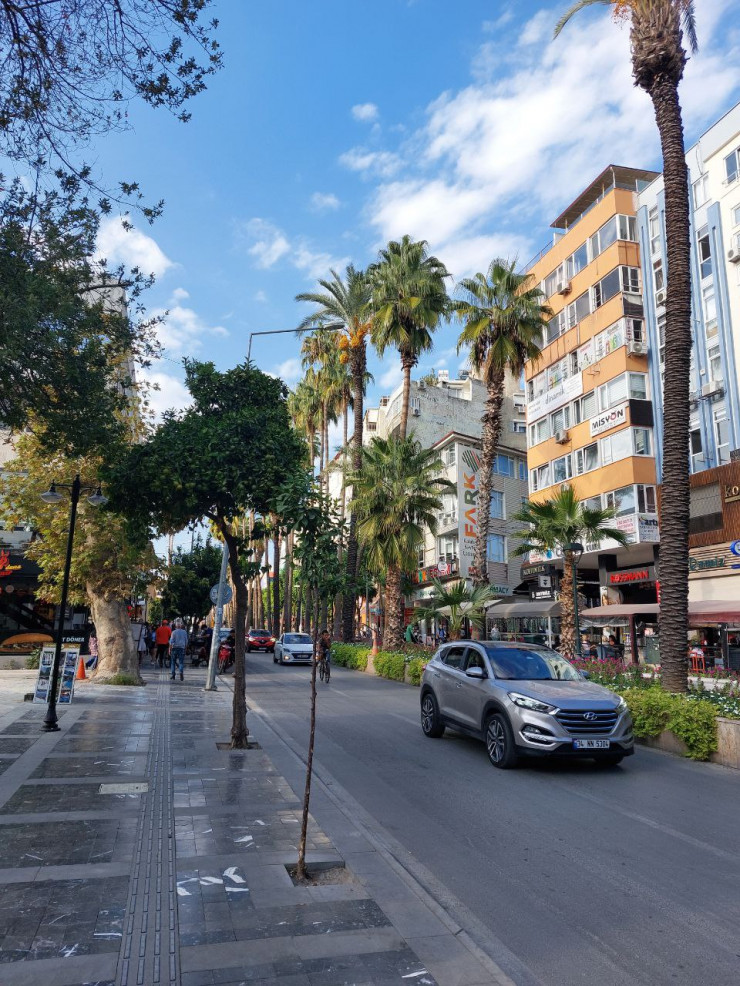 Город очень зеленый, по пути везде встречаются мандариновые, гранатовые, оливковые деревья и финиковые пальмы, некоторые растут во дворах, некоторые - прямо на проезжей части. Также на Анталийском и Аланийском побережьях достаточно часто встречаются банановые и оливковые плантации.