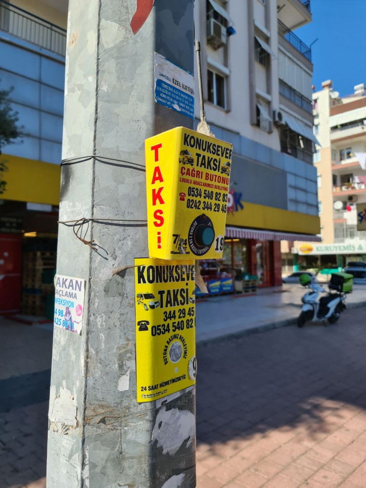 Такси в Анталье можно вызвать почти из любого места в городе. На столбах имеется специальная кнопка для вызова. Но на собственном опыте скажу, что такси приезжает не всегда и не так быстро, как хотелось бы.