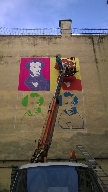 А работу "Пушкин в поп-арте" Паша Кас нарисовал 2 года назад на Итальянской улице Петербурга, на стене дома №37. Портрет Пушкина представлен в стиле знаменитой работы "Мэрилин" американского художника и дизайнера Энди Уорхола, которую он создал в августе 1962 года.