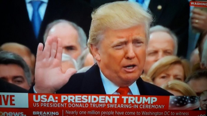 23.13. Фотография Трампа в момент присяги.