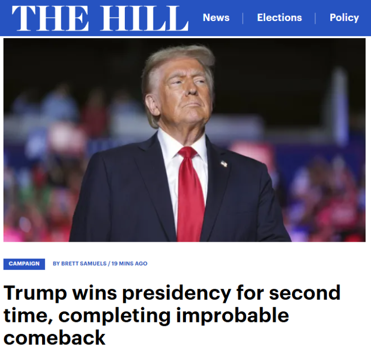 Американское издание The Hill уже заявило о победе Трампа, назвав это "невероятным камбэком".
