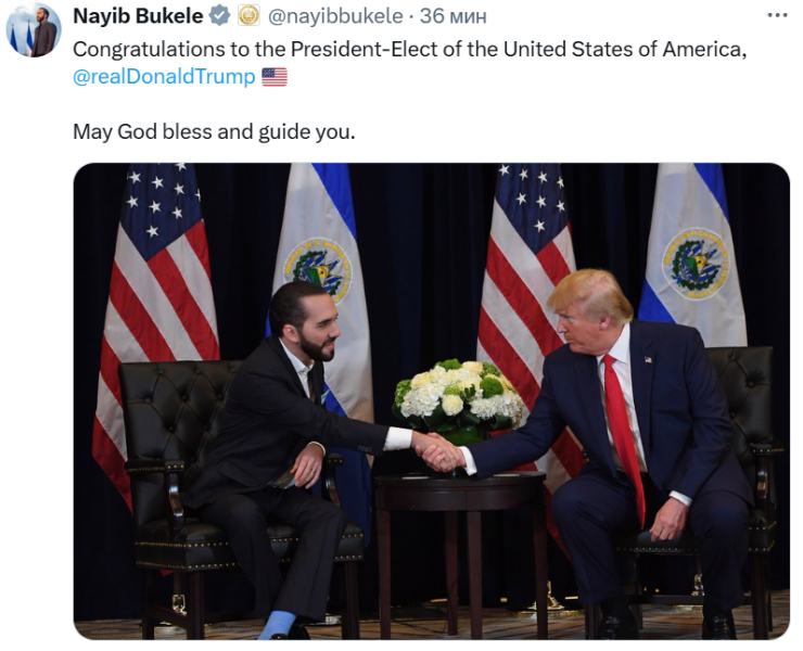 Трампа уже поздравил президент Сальвадора Найиб Букеле. Также свои поздравления отправил один из самых радикальных немецких политиков Бьорн Хеке.