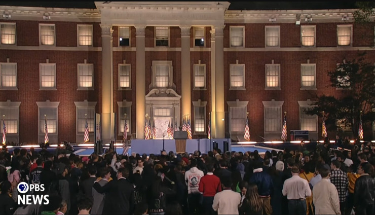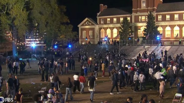 Камала Харрис не выступит сегодня перед студентами. Представитель кандидата от демократов заявил, что она вернется на эту трибуну завтра. Толпа расходится по домам.