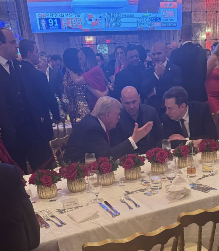Вот так выглядит вечеринка Трампа по случаю дня голосования. Кстати, рядом с республиканцем все это время находится один из самых известных его сторонников - Илон Маск.