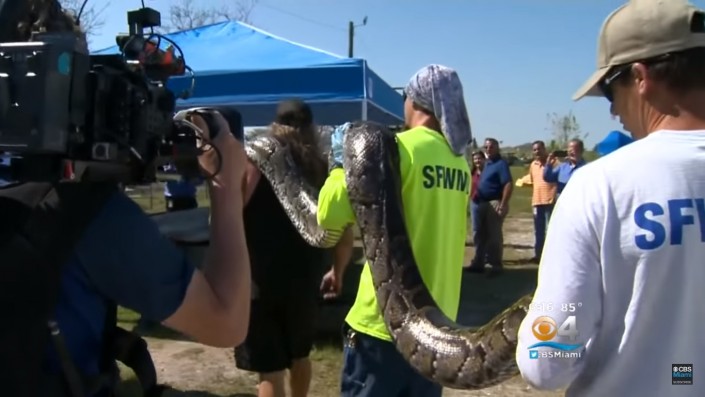 В США охотник "голыми руками" поймал гигантского питона: Внутри нашли 78 яиц © miami.cbslocal.com