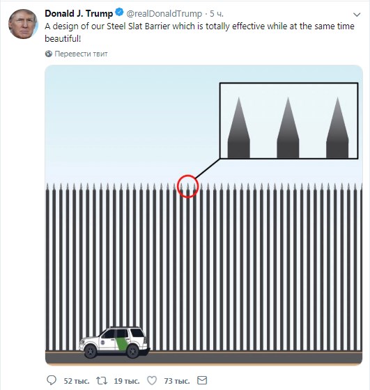 Трамп опубликовал в Twitter картинку стального частокола с заостренными вершинами высотой несколько метров.